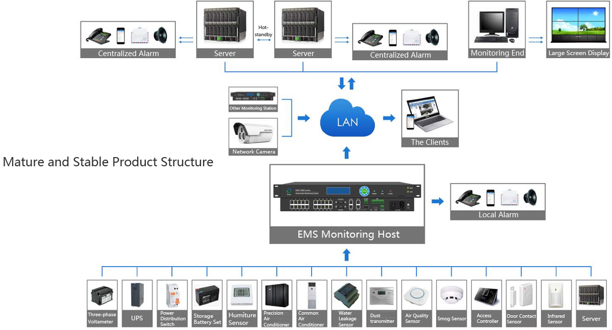 The importance of hospital is known to everyone as it isa guardian unit for people’slife safety.Special storage warehouses such as computer rooms, operating rooms, laboratories, refrigerationhouse, medical warehouses, etc. are importantplacesfor hospitals. These sites’ normal operationshould be guaranteed.Thus an integrated monitoring solution that can monitor the operation status of these sites at any timeis very necessary.